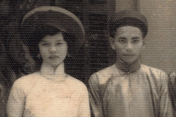 Trong những gam màu nâu trầm của bức ảnh cũ, một khoảnh khắc vượt thời gian trong lịch sử gia đình được lưu giữ—một khoảnh khắc cha mẹ tôi trong ngày cưới của họ. Đứng bên nhau, khoác lên mình trang phục truyền thống của Việt Nam, họ hiện lên với vẻ duyên dáng, trang nghiêm, và mang theo một di sản văn hóa được truyền lại qua bao thế hệ. Bức ảnh ấy tuy tĩnh lặng, nhưng lại kể một câu chuyện đầy cảm xúc về tình yêu, truyền thống, và sự khởi đầu của một cuộc sống chung. Bức ảnh này không chỉ là một ký ức; nó là một gia tài. Và thông qua nó, câu chuyện tình yêu của cha mẹ tôi vẫn tiếp tục truyền cảm hứng và dẫn lối—giống như ngày thiêng liêng ấy, khi họ trở thành một.